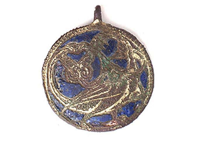 <p>After a brief chat I picked up the E-TRAC and was surprised to find that it was not the spade. With the landowner looking on I dug a plug of soil out of the turf, and between 6 and 8 inches down and the bottom of the hole the land owner and I found our selves looking at a 11-12c Heraldic Pendant with gold and blue enamel decoration it measures 50mm across with the suspension loop still intact. I is beautiful, this what detecting is all about..</p>
