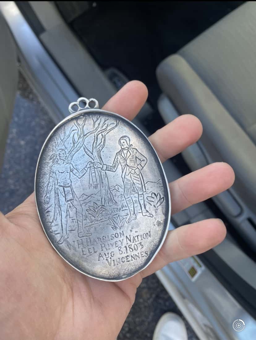 I found this Indian Peace Medal a few years back. My stepdad and I go detecting all the time and I had never struck silver until I came across this beauty!! It was found at a local park where we had gotten permission to hunt and it was on our second hunt out there. It goes to show that there is so much history to find we just gotta go get it!!