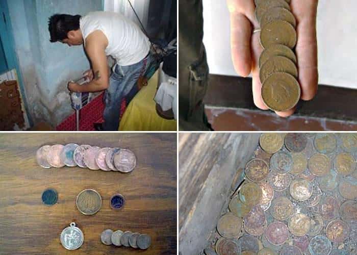 An enthusiastic team of treasure hunters from Mexico were the lucky finders of this treasure chest filled with various valuable old coins. The chest was excavated from the basement inside a residential house.