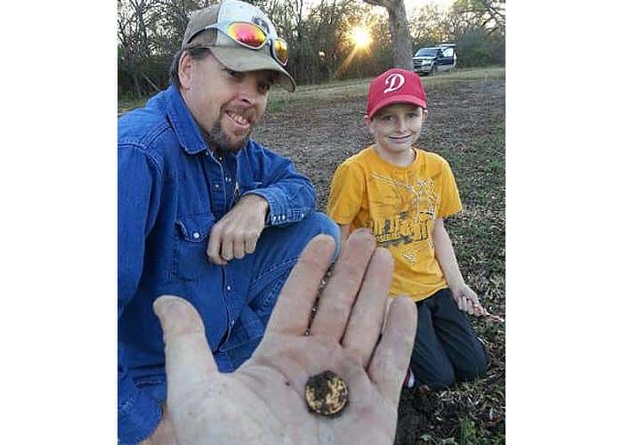 <p>The sun was setting and my boy and buddy had already headed back to the vehicle. I was working my way back to the vehicle with my E-TRAC as they came over to hang with me. I told them we would leave after one more target. I got a signal and dug some lead. OK DONE, let's go! By now we were about 50 yards from the truck and I was still swinging my E-TRAC and about 10 steps from the last signal I got another. I cut the hole with the shovel and located it with my pinpointer. I brushed some dirt away and saw a glint of gold and immediately slammed my hand over the hole to hide it. I couldn't believe what I saw and my buddy said. "Is that what I think it is?". I still had my hand covering the target as I was SAVORING the moment. I slowly pulled my hand away and sure enough, it was gold but we couldn't tell what though. My son's eyes were as big as pancakes as I gently pulled the coin from the ground.</p>