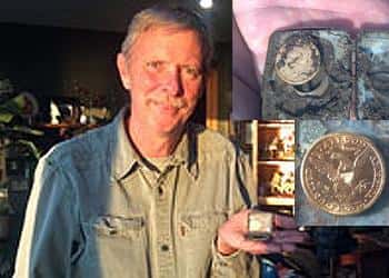 <p>Metal detecting finds - gold coin I pried lightly and it popped open and to my surprise gold showed through the mud and deteriorated powder puff, I started hooting and she said be quiet until I showed her which she started yelling NO WAY!</p>